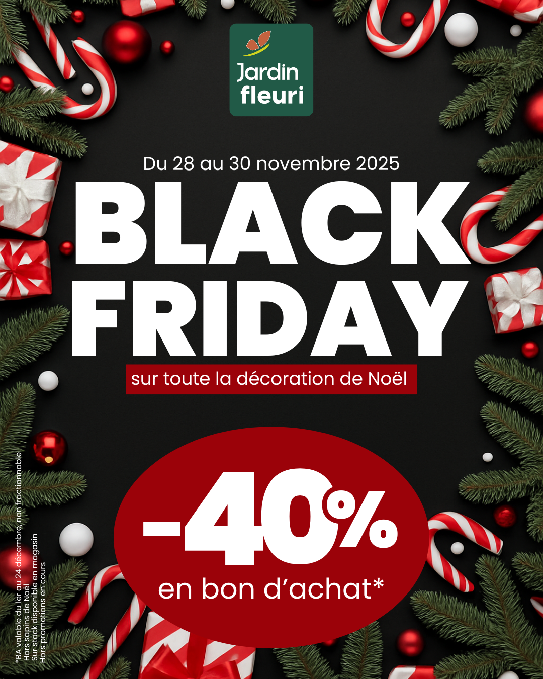 Pour célébrer le Black Friday, nous vous proposons une opération exceptionnelle : -40% en bon d’achat sur l’ensemble de la décoration de Noël disponible en magasin. Une occasion parfaite pour préparer votre intérieur et créer une ambiance féérique sans faire exploser le budget.